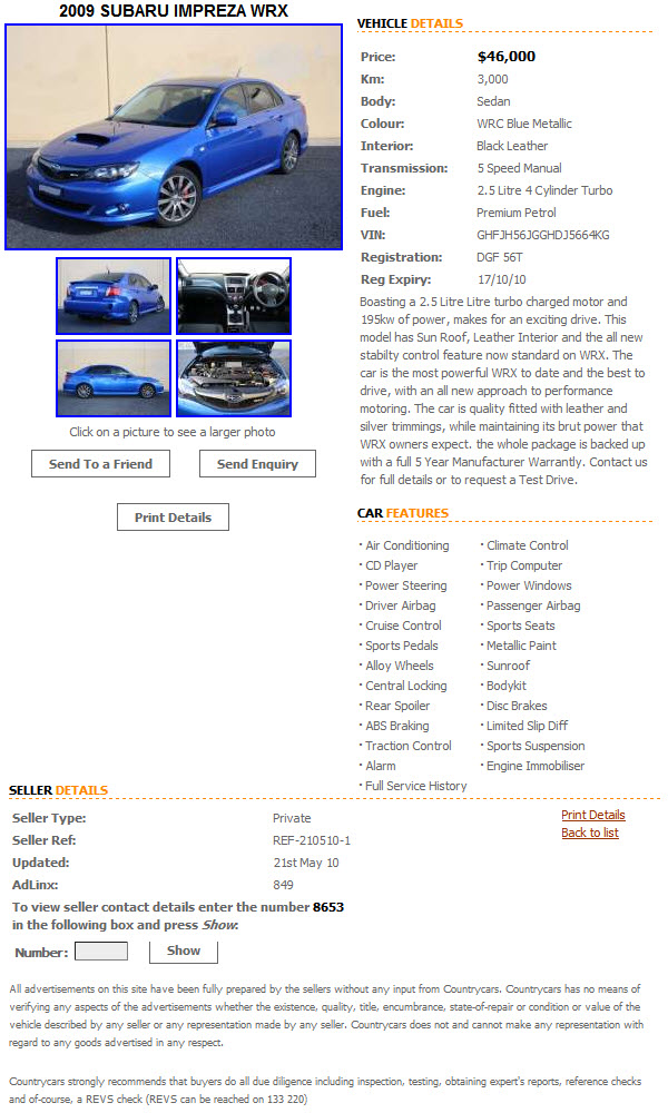 Silver Ad Vehicle Detail Page